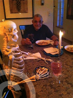 Once again Miss Sammy Sam scores! She gets a Day of the Dead shot glass from our 13 year old neighbor...yeah, 13!!! Thanks L! And she stole my new skull Mardi Gras Beads I got from Charlie Z.